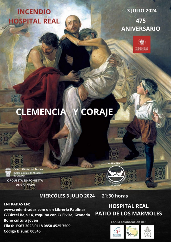 Recomendamos participar ese mismo día en el acto cultural Clemencia y Coraje, teatro concierto solidario en el Hospital Real a beneficio del Banco de Alimentos de Granada