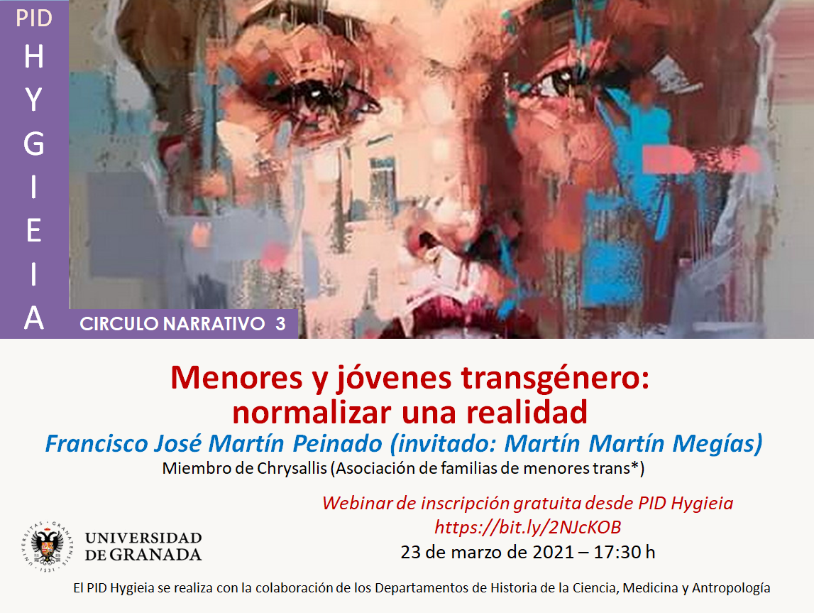 Doctor en Geología. Profesor titular de la Universidad de Granada. Experiencia docente e investigadora desarrollada en la Facultad de Ciencias de la UGR desde el año 1998. Miembro del equipo provincial de trabajo de la Asociación Chrysallis, realiza acompañamiento a familias con menores transgénero. Ha impartido numerosas charlas sobre la infancia y juventud trans* y cursos de formación a profesionales en el ámbito educativo y socio-sanitario. El Dr. Martín Peinado contará con la colaboración en este círculo narrativo de Martín Martín Megías, joven trans*.